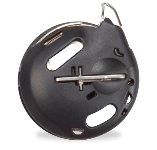 Black bobbin case. This is an ideal bobbin case for sewing and embroidery. The BERNINA Hook combines the advantages of the two best hook technologies in a unique way. The new centerpiece from BERNINA has an innovative, centrally positioned drive that allows the BERNINA Hook to operate very quietly and smoothly. Two oscillating cams ensure smooth passage of the thread and extremely quiet operation at speeds of up to 1,000 stitches per minute and a stitch width of up to 9 mm.