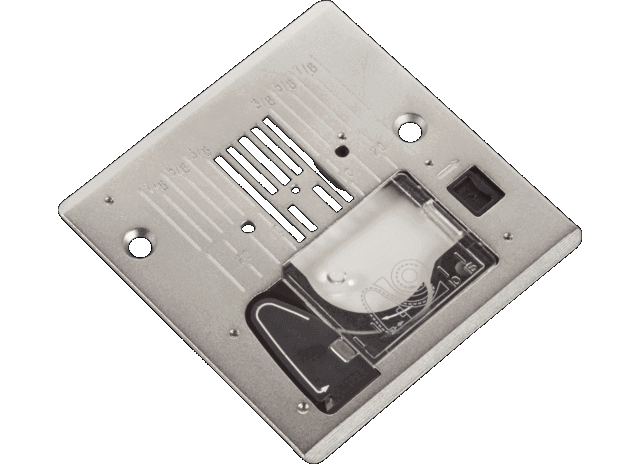 The Straight stitch plate can be used for straightstitching and embroidery, as well as for CutWork projects. When straight-stitching, perfect stitch formation is achieved by using this stitch plate with a presser foot with a small opening.